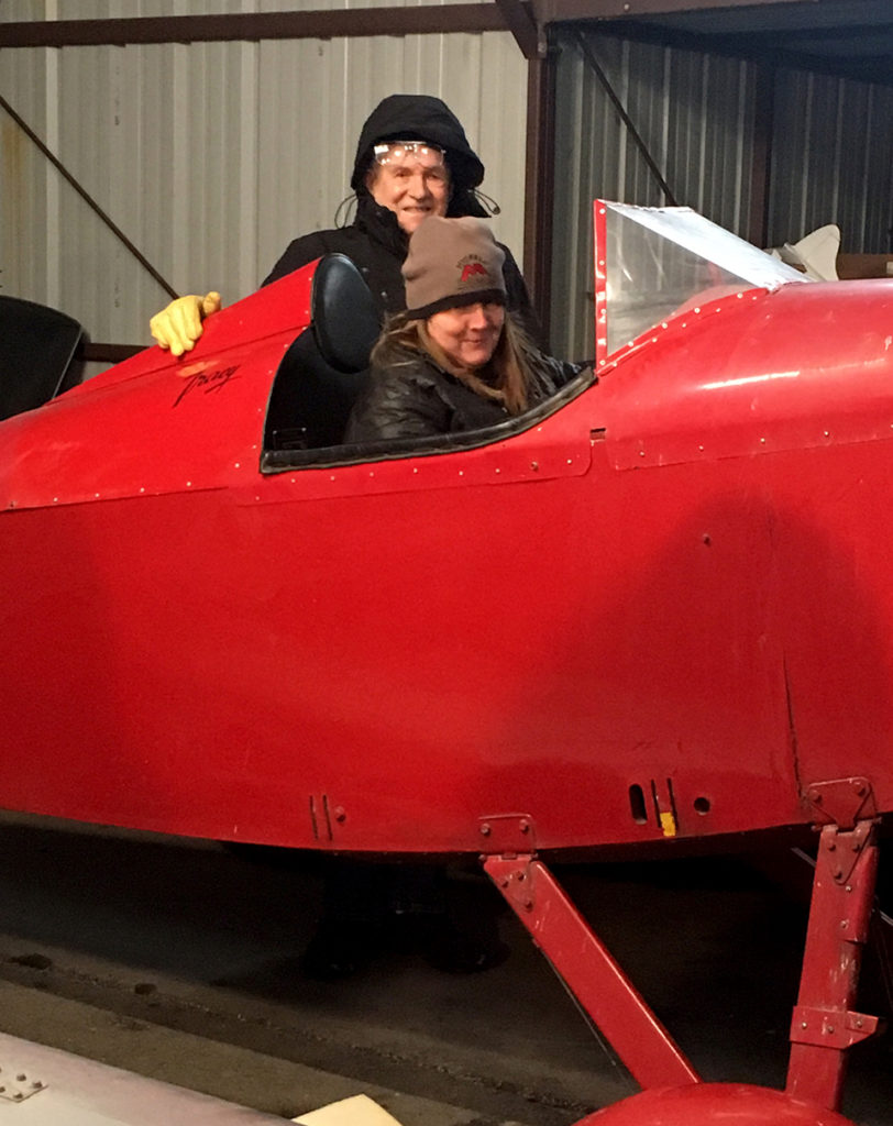 The first idea was to go and see the aircraft, but soon the idea became buying my mother’s aircraft and returning it to her as a Christmas present. Upon talking to the current owner, he was willing to sell it for a reasonable price. As I shared the news of finding the plane, Tracy’s friends and family who frequent her hangar one by one decided to chip in. Before long, I had enough to buy the plane all with funds from people who wanted to see her get the aircraft back. On December 18, Tracy was led into a hangar having only been told that a group of friends had to go look at something. As she rounded the door in the hangar, her old Fly Baby stood proudly to greet her. Its bright red paint still shone along with Tracy’s name still painted on it. It only took seconds for her emotions to overtake her as it all set in. “I never thought I would see it again, let alone own it,” she said later. This surprise is a prime example of the culture that Paul Poberezny founded EAA on and proof of what an airport community is capable of.