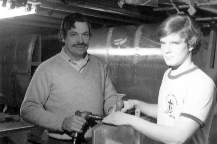 Dad had wanted to build his own airplane for quite some time when his work took the family to Neenah in Wisconsin, just up the road from Oshkosh, in the early 1970s. He went to his first EAA Oshkosh that first year. Bitten by the bug in a serious way, he bought a set of plans for John Thorp’s T-18 design and the required sheet aluminum of various thicknesses then started forming parts and recruited meas chief rivet bucker and quality control inspector. Strange noises emanated from our basement at odd hours. Did I mention the T-18 was being built in our Wisconsin basement?