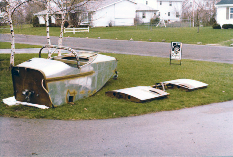 Fuselage and inner wing section on the lawn. These drew a few stares from passing motorists. Note the Realtor’s sign.