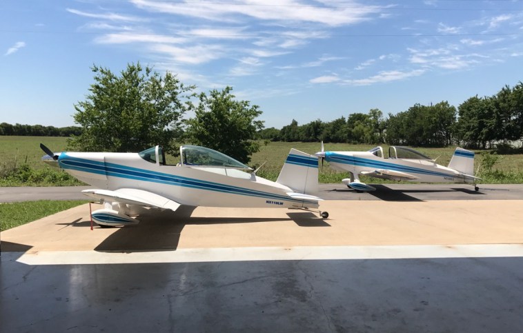 Dad’s T-18 in the background with Lee Walton’s latest T-18 in the foreground. Some paint schemes are timeless.