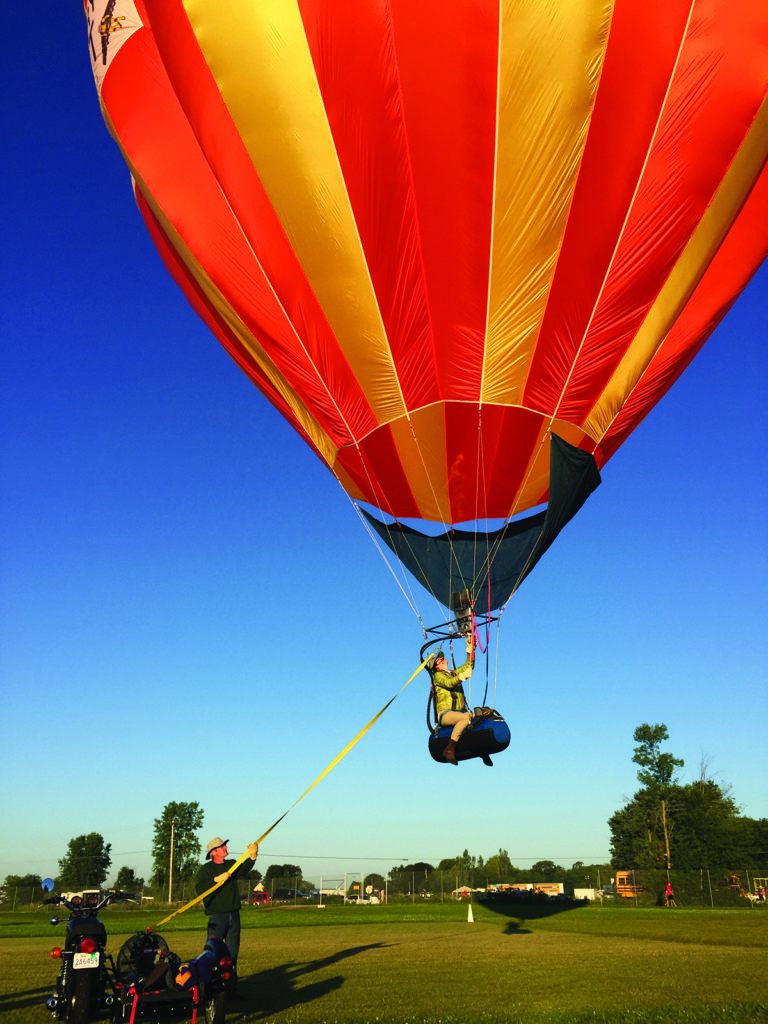 The lighter weight also allows a smaller chase vehicle to pick the balloon pilot up after landing. Mike said balloons usually rely on a pickup truck or similarly-sized vehicle, but he uses a 1978 Yamaha XS650 motorcycle, combining his love of cycling with his love of flying.