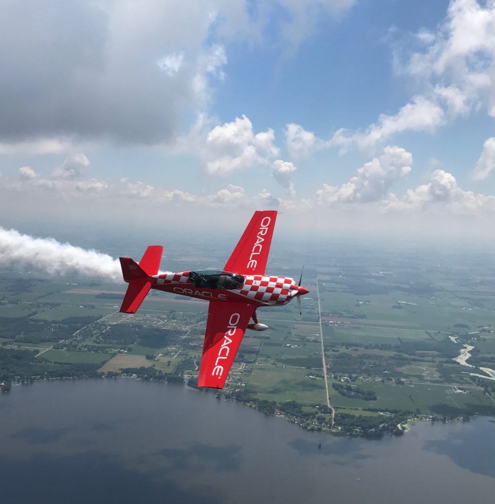 Ti’s iPhone air-to-air photo of Sean D. Tucker flying Young Eagles pilot Doug Milius.