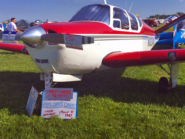 The mission was accomplished with a temperature of 109 degrees in Death Valley, 39 degrees in Leadville, and beautiful weather at Oshkosh. Not bad for a 70-year-old airplane. It’s a 1947 Bonanza, serial No. 667, and the first flight in the logbook was on August 18, 1947.