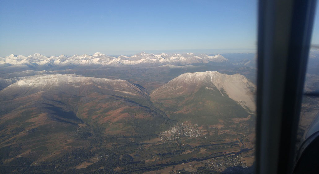 The forecast was accurate, so we sat out a day in Medicine Hat watching the weather roll through. We had spoken at length with flight service for advice on the best route through the Rockies, given the amount of smoke in the vicinity. At first we planned to head west from Banff, but as we got closer to the actual date to cross, the southern route (Crow’s Nest Pass) became more favourable, so we selected that.