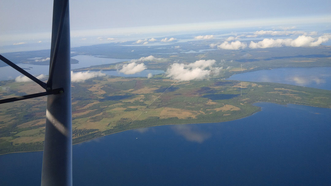 We prepared for departure on the morning of Sunday, September 10. It was cool and sunny at Burlington Executive Airport (CZBA) as we cleared heavy dew from the plane. The long-range forecasts looked fantastic for the week and the forecast for departure day was excellent. After a thorough preflight and packing the plane to keep essentials at hand (iPads and chocolate), we committed to flight at 1230 Zulu. Once clear of Toronto’s control zone, we climbed to 4,500 feet, then later to 6,500 feet as we passed over Wiarton, Ontario, in preparation for the water crossing to Manitoulin Island and on to Elliot Lake Municipal Airport (CYEL). On the ground at CYEL, we realized that we had done a poor job of checking the Canada Flight Supplement for fuel availability on Sunday, so we paid the call-out fee and made a note to not make that mistake twice. Fortunately, the fuel attendant responded quickly and was extremely friendly.