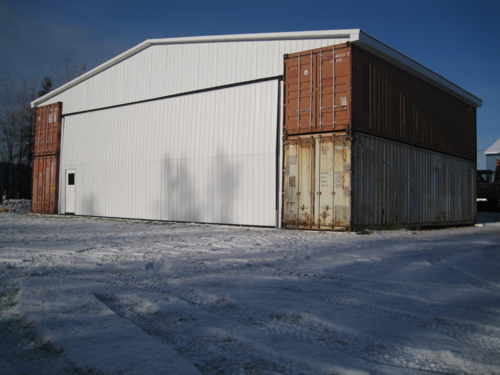 Chapter 1129 in Fairbanks, Alaska — officially the farthest north EAA chapter — has come up with an unusual, but very “EAA” way to build our chapter’s new hangar. Our building consists of four extra-large, 40-foot, steel cargo containers stacked two high, then spaced apart about 50 feet, with a custom built steel truss roof over all. The back wall is framed up of 2-by-6s with plywood sheathing. The floor is inexpensive asphalt on grade.