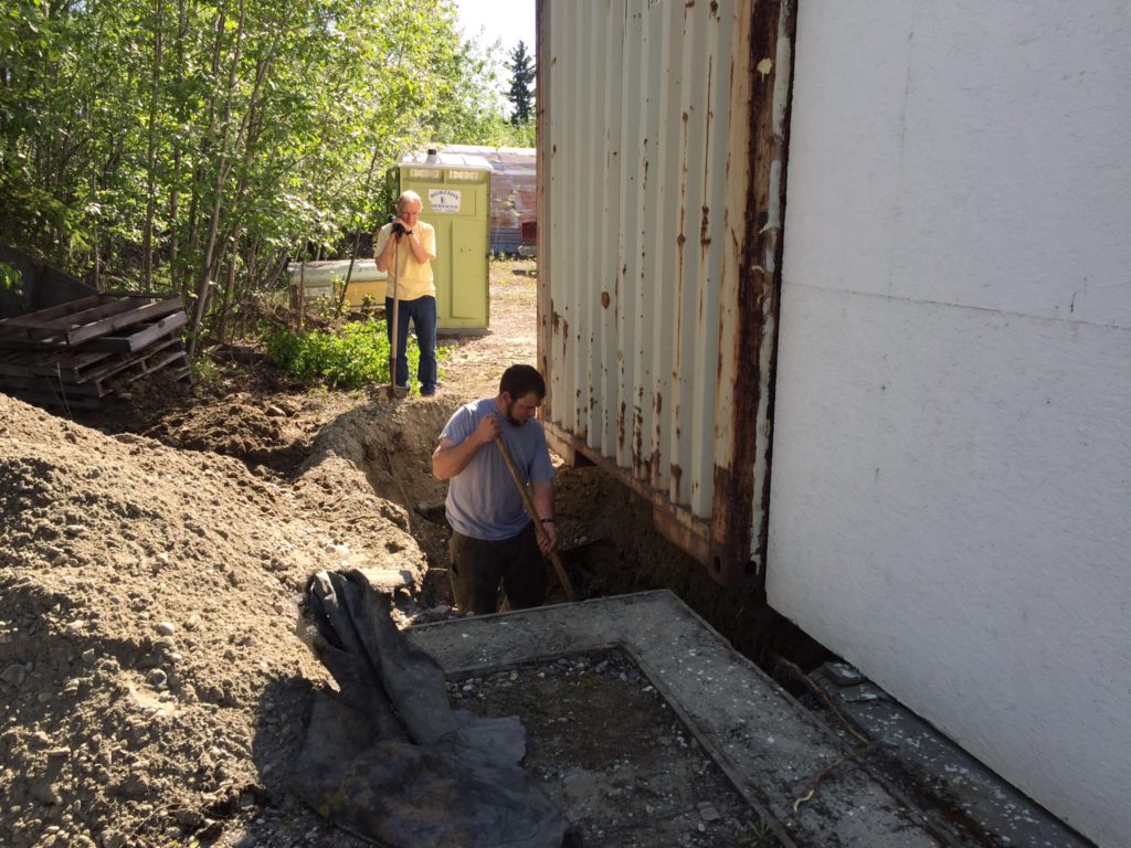 “Our goal is to get the interior walls insulated and heater and lighting installed this summer so that we will be able to start having our regular meetings here over the winter,” Bruce said. “We also have plans to cut some doors into the interior walls of the lower containers, using one of them for kitchen and bathroom facilities, and the other to house woodworking, metalworking, and welding equipment.”