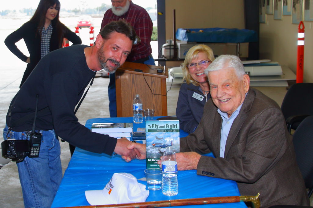 Bud sold nearly 100 copies of his book, To Fly and Flight: Memoirs of a Triple Ace. The event worked out beautifully for all parties involved.