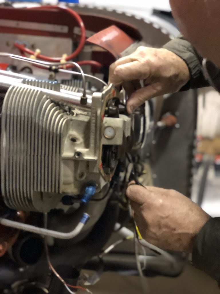 “This is the cylinder head temperature probe,” he said. “The heat shrink has to come off and the connectors taken apart.” He pointed to a razor blade on our work table.
