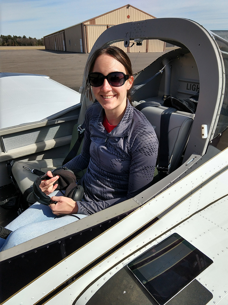 After her Eagle Flight, Sarah said she spent time talking to Serena about the next steps in flight training and decided to go ahead with it, eventually finding an instructor in Waupaca who has been training her in an RV-12. Sarah was involved in a skiing accident a while back that left her paralyzed for a month and has created some lasting nerve damage. She said this has made flight training more challenging, but she’s overcome it with only a few minor bumps in the road.