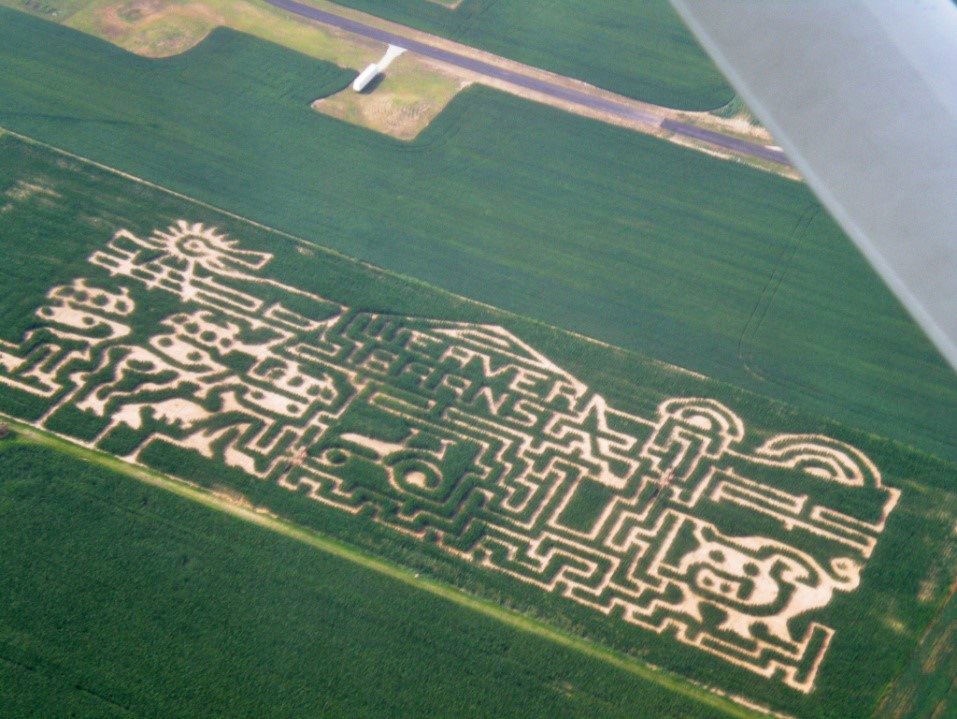 Since our pilots fly a variety of airplanes, we have different routes of flight to separate the faster and slower aircraft. Each route takes about 20 minutes to fly. During the fall months, the routes overfly at least one corn maze, which is always interesting to see from the air.