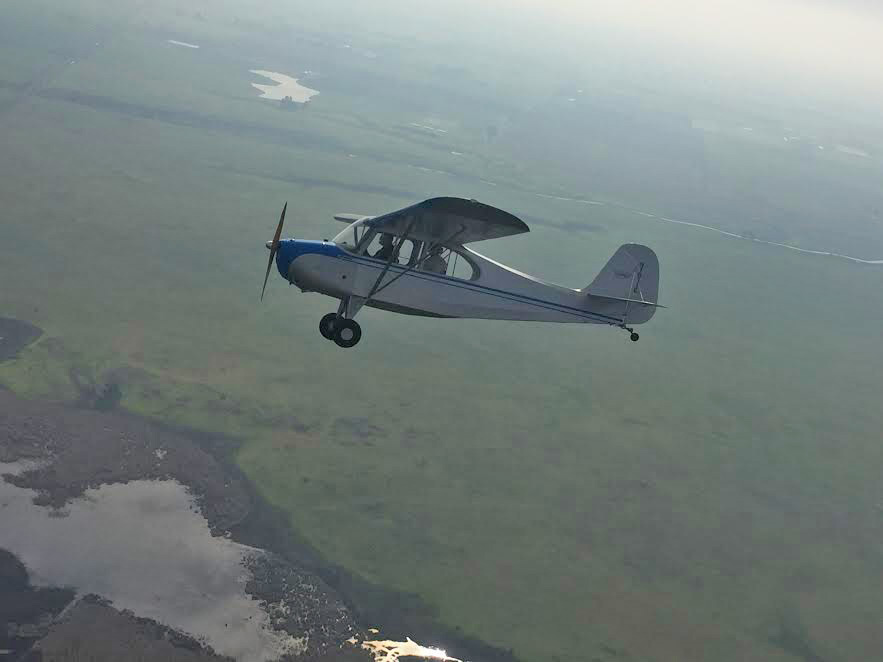 Coming into July of 2016, it was all coming together, and we moved the Champ to a borrowed hangar at Franklin Field and assembled it. Another unsung hero came into play here in the form of one Mike Pavao, EAA 277905. Mike had bought Air Repair from Smitty and had flown many planes in his time. He had owned a few 7ACs and he graciously accepted our offer to be the first to fly our project. So in July 2016, after a few taxi and brake checks, away it went into the sky. Wow, it flies! Mark always knew it would; I was a little more hesitant and fearful for Mike’s wellbeing, but it did great for a first flight. It handled fine and with just a few adjustments to cable tension needed, it was good to go!