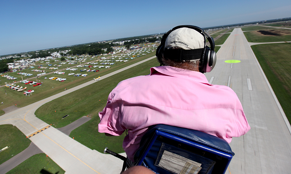 “That way, when [the aircraft] are touching down, it’s a visual cue that shows us where our separation is, so we’re not guessing,” said David Kaupp, who for seven years has worked as one of the 64 air traffic controllers it takes to run AirVenture smoothly.