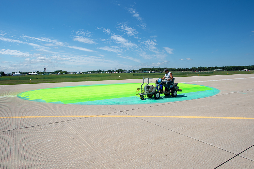 As part of the annual preparations for AirVenture, during every July since the late 1990s Wittman airport’s maintenance crew has hauled its paint gear out onto the runways to touch up the growing number of large, colorful dots that have become a quintessential part of the experience of flying into EAA’s annual convention.