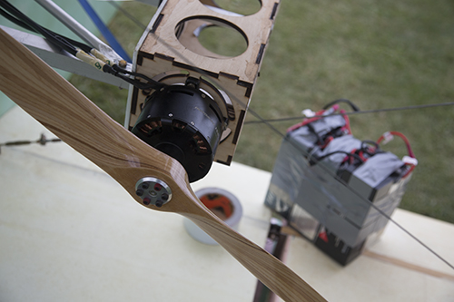 Using a simple 3D modeling program to design the aircraft, he built it in two-and-a-half months, using specialty tools like a laser cutter to reduce build time and spending “probably around $6,000 because I made a lot of mistakes and bought parts that didn’t work out.” The aircraft was “built very safely,” he said, with aviation grade hardware throughout. Empty weight, without the 30 pounds of batteries, is about 210 pounds, and it’s powered by 150 cc electric model airplane motors, producing a total of some 9.8 kW of energy, or about 13 hp. As an ultralight, it requires no certification.