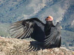The condor mission was particularly important given the birds’ status. At their most threatened point in the late 1980s, only 22 California condors remained in the wild. Those birds were brought in from the wild and moved to zoos and captive breeding centers. The California condor is the largest vulture in North America. Condors are carrion-eaters and do not hunt. They weigh up to 20 pounds and depend upon a wingspan up to 9 and a half feet to support their weight as they soar majestically among the peaks. Because they are scavengers, they don’t need the sharp grasping talons of hawks and eagles. They are social birds that often fly in groups. After mating and producing an egg, a pair will raise the offspring together for two years without further egg production during that time. It will take yet another six to seven years before the offspring becomes reproductively active. As a result, recovery proceeds slowly in the wild. Nonetheless, it helps that these birds are long lived when not exposed to lead. They once ranged over much of the western U.S., but with so few in the wild their range is limited to portions of California, Arizona, Utah, and Baja California in Mexico today. Through persistent conservation efforts, the condor population has slowly grown to approximately 500, of which about half are now in the wild.