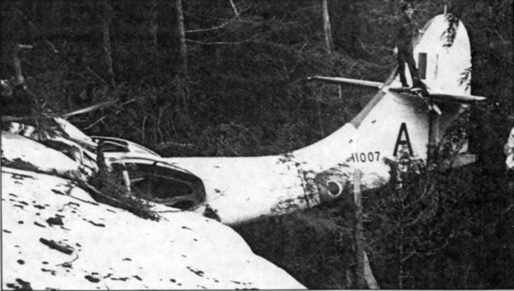 At 2300 on the night of February 10, 1945, a Royal Canadian Air Force Consolidated PBV-1A* Catalina serial No. 11007, also known as the Canso, took off from RCAF Tofino on a routine exercise flight. The flying boat, modified for anti-submarine ops, was loaded with 12 crew, four 4,100-kilogram depth charges, and 3,400 litres of fuel. Shortly after becoming airborne, the port engine failed, and the aircraft descended at 300 meters per minute into the dense bush on a hillside not far from Tofino.
