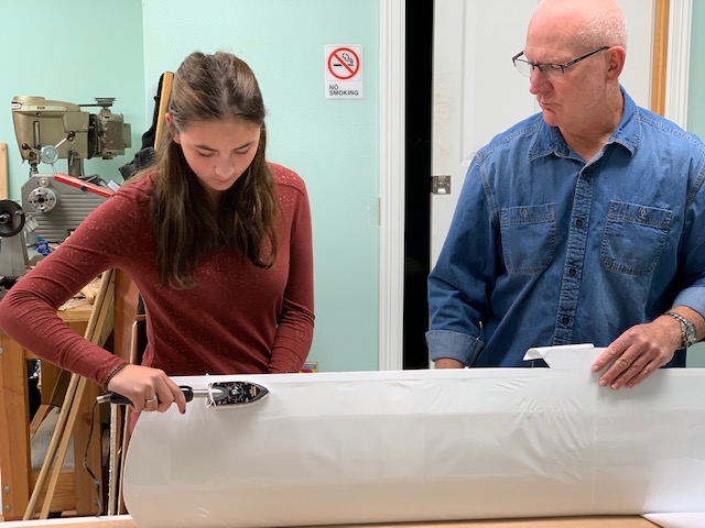 “Have a designated build area before receiving the model,” Tim said. “Our chapter had none and it took several months to finally find someone to let us set up and work in his hangar. This really turned out well, as he had several planes in the hanger and the instructors were able to take the students out to the planes and show them wing shapes and different parts of a real airplane.”
