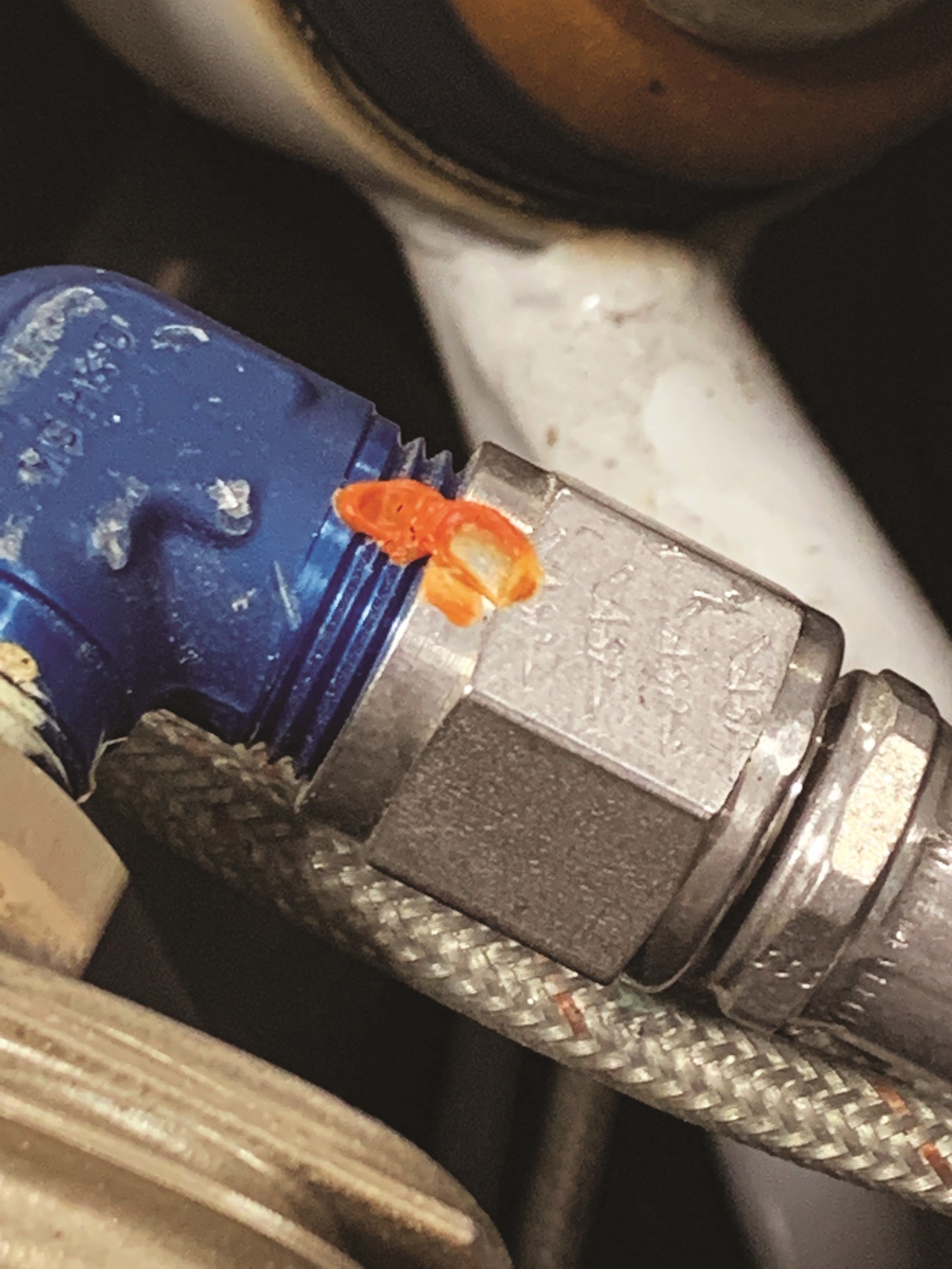 Torque seal is nothing but an indicator that is placed on a fitting to indicate movement. It has no locking ability at all. It is applied only after the subject fitting is properly torqued. When you take the time to apply it to all of the fittings and jam nuts on your airplane, it will make future inspections go much faster, as you only need to do a visual inspection rather than having to put a wrench on each fitting to verify it hasn’t loosened.