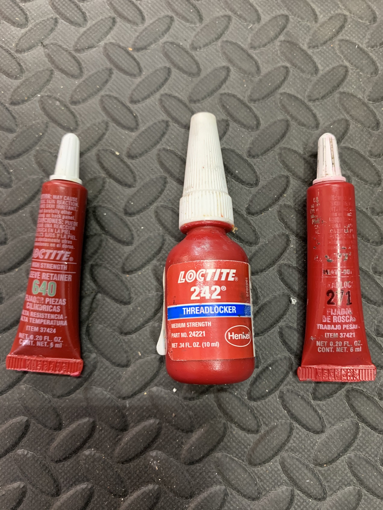 Loctite, on the other hand, is a product that is designed to keep a fastener from turning, usually in a high-vibration or high-stress environment. Some bearing races are installed with the green Loctite, and some engine bolts use red Loctite, such as the stud bolts that hold on the vacuum pump/standby alternators and prop governors. Loctite comes in varying strengths, the strongest of which requires heat to break it loose, so you want to use the Loctite appropriate for future removal if required. I keep the three most common types in the shop: 640 (green), 242 (blue), and 272 (red) (see picture). I use blue Loctite for stuff I know I may want to remove in the future, like baffling bolts, and red Loctite judiciously.