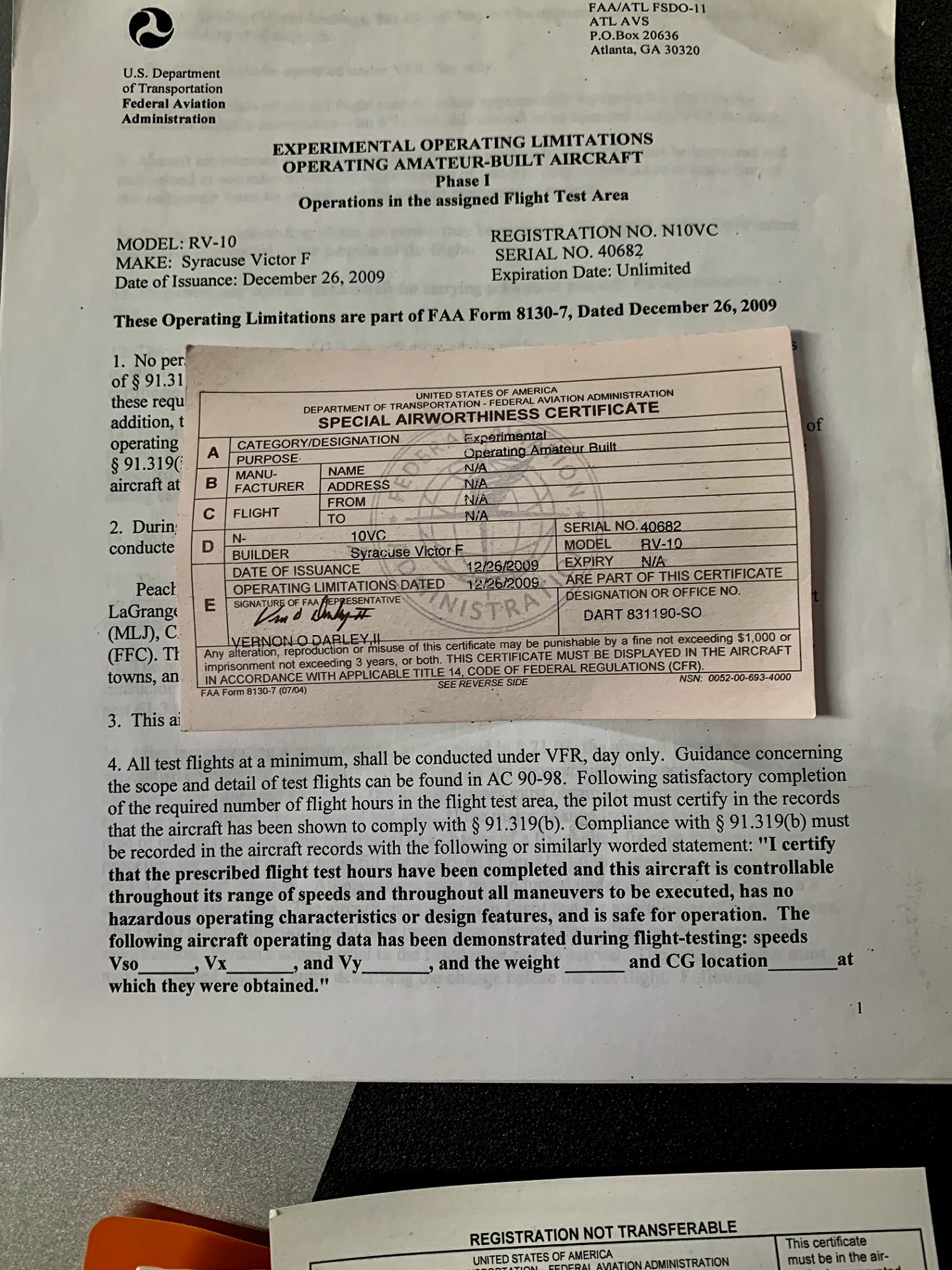Usually, the limitations are on three to five pages of FAA letterhead and they define the Phase I and Phase II requirements. If you don’t have them or can’t find them, they can be replaced in a couple of ways. The easiest is to find a DAR who can issue replacement operating limitations and certificates, as I do. You can also go down to your local flight standards district office (FSDO), and it will reissue them. You will get a new airworthiness certificate in both cases, as they have to match each other. You can also call the FAA Aircraft Registration Branch. It should have a copy, but there is some question as to whether or not the operating limitations in the aircraft have to be the originals.