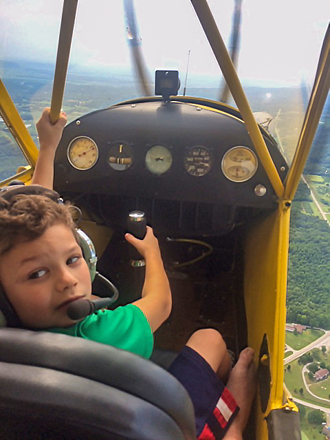My nephew, Tayten Rentfrow, is a happy, rambunctious youngster full of energy and always after the next adventure. Doesn’t matter if it’s flying in a semi open cockpit Cub, chasing down blue racers on my farm, running the creeks with Grandpa looking for Native American artifacts, or trying to ride an unbroken donkey, he is always full of energy.
