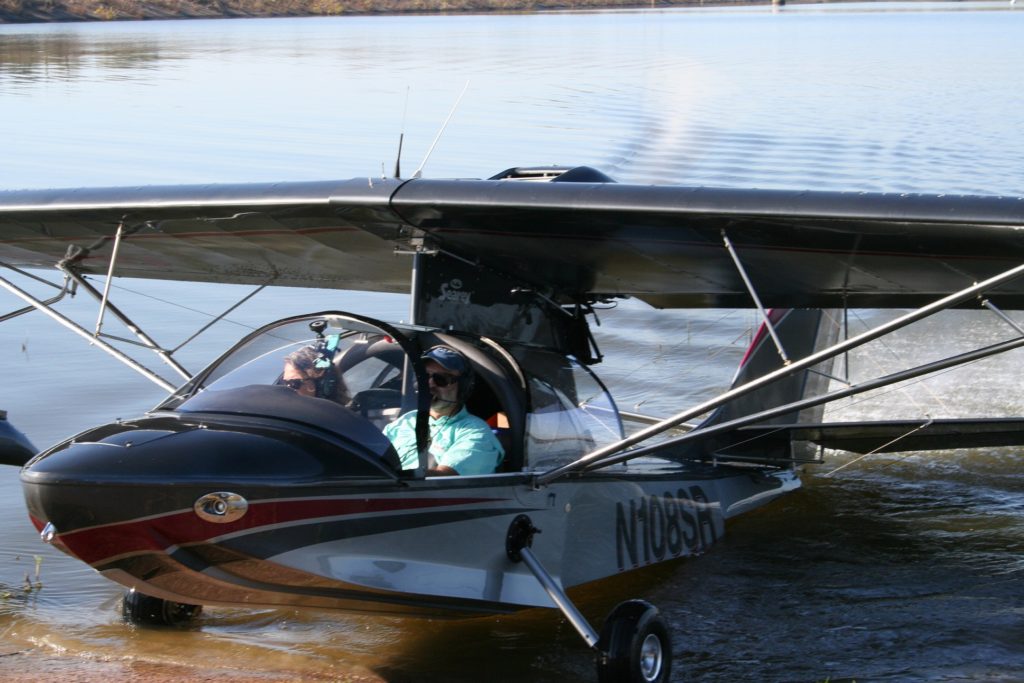 Saturday, November 7, the weather was perfect. Everyone was in place. Local businesses, including McDonald’s, WalMart, Ace Hardware, and Apple Chevrolet contributed raffle prizes, resources, and people to make this a great event. At 8 a.m., the loudspeaker system crackled with the voice of the first pilot reporting he was inbound to T15. Soon after, the familiar sound of an airplane engine was heard, followed by the first arrival, a V-Tail Bonanza. Minutes later, a Piper Cub landed. Within an hour there were more than 35 airplanes parked around the ramp and four Sea Rey floatplanes on the lake! Everyone enjoyed their pancakes and coffee and the chance to explore this previously unknown destination.