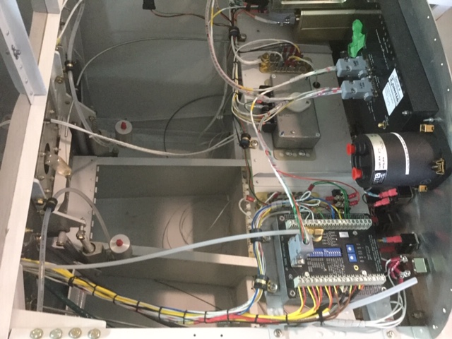 The back office of the system: Where the sausages are made. All thermocouple wiring comes in to an iEFIS interface box (bottom right) that digitizes the analog signals and sends it to the EFIS via a CAN bus link.
