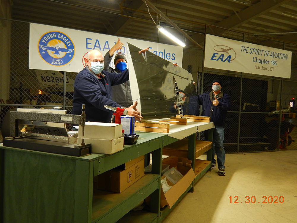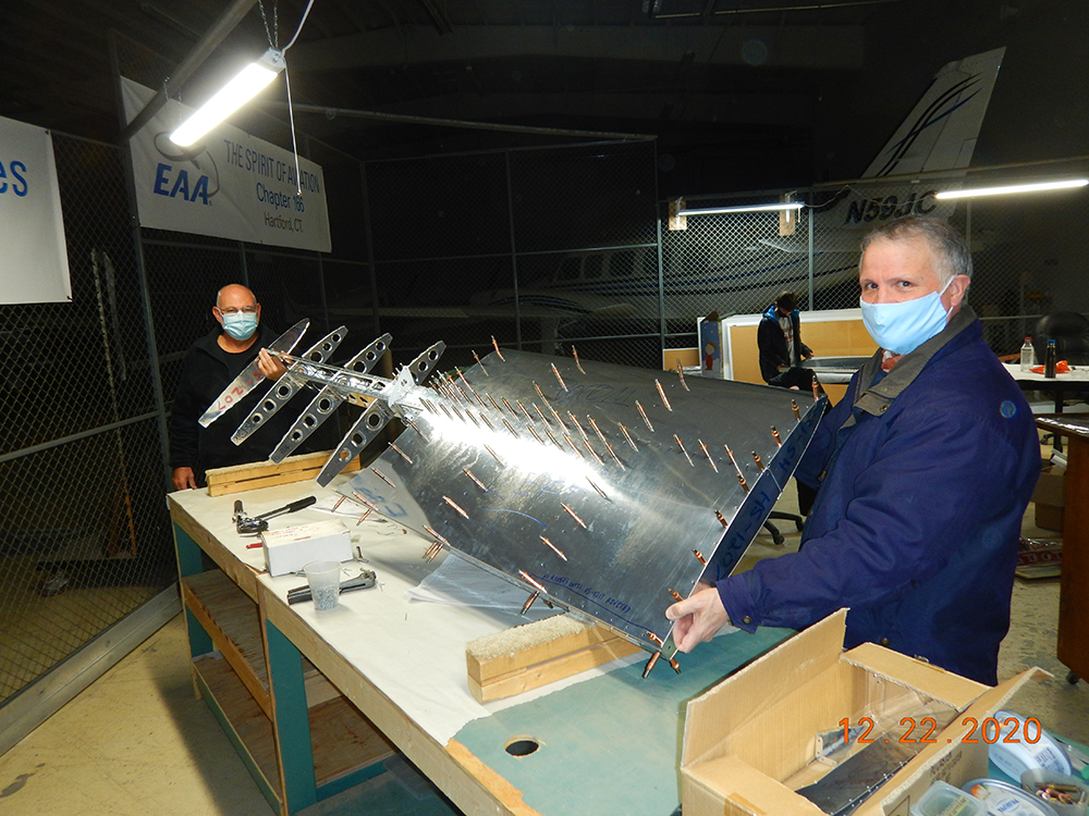 “To date, the students have completed the vertical fin, rudder, and wings, with work well underway on the stabilator, fuselage, and tail cone. The only kit left to purchase was the avionics package. Approximately 20 students migrated to the chapter with the project and were ecstatic that they can resume building and eventually form a flying club! Even the local FBO, Hartford Jet Center at Hartford-Brainard Airport (HFD), is letting us use space in one of its hangars to build our RV-12. Further proof of engaging in THE SPIRIT OF AVIATION!”
