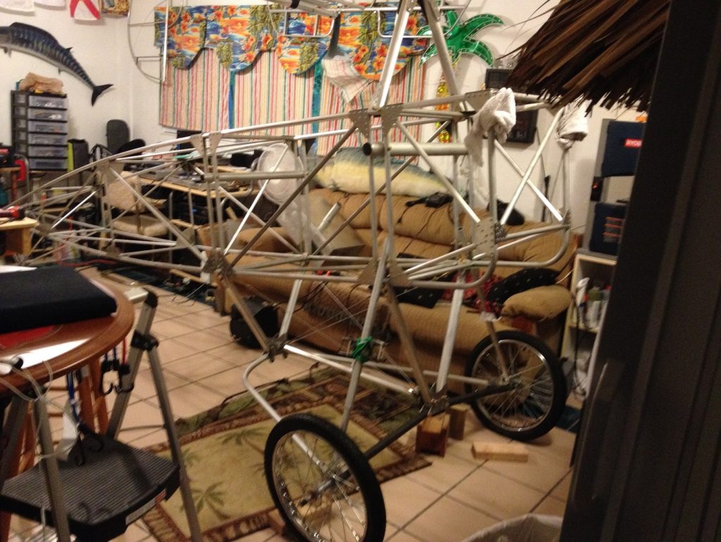 And so Ed, Fred, another Ed, and Shirley became my assembly and testing team. For insurance purposes, Sol, the owner of the flight school next door, would be my flight advisor. He had built and flown a Kitfox and had plenty of tailwheel time. I can’t thank them enough for the time and effort they put into making someone else’s dream a reality. Nor can I thank my wife enough for exhibiting more understanding than actually existed and for letting me store my engine and landing gear in the living room as Hurricane Irma bore down; thanks also to my son for shooting longeron rivets and helping to move the engine when required.