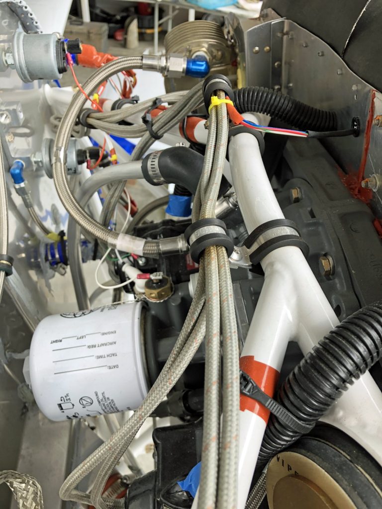 Flexible line inspections may save you from an in-flight failure. Look carefully at the fittings. Over time, hose clamps can create a weak area that begins leaking slowly. Also, inspect the routing of all lines for chafing.
