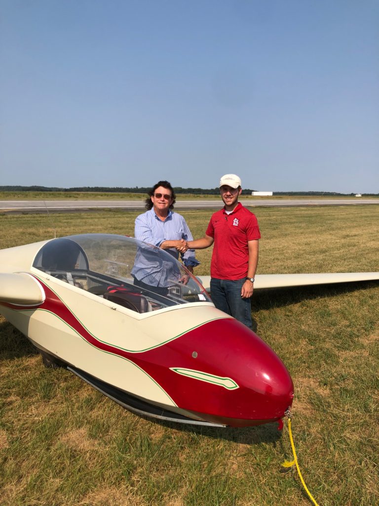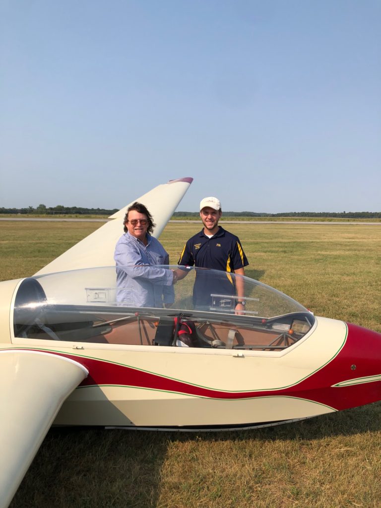 On Saturday, September 11, 2021, 18-year-old Nick Baker, EAA 780118, of Noble, Illinois, passed the practical test for his commercial glider certificate. The following day, he successfully completed his initial CFI practical test, becoming a CFI-G. Both checkrides were conducted by DPE Burt Compton, EAA 203788, from Marfa, Texas, while visiting the Wabash Valley Soaring Association located at the Lawrenceville-Vincennes International Airport in Lawrenceville, Illinois. The glider CFI rating was made possible through a CFI-G scholarship from the Soaring Society of America.