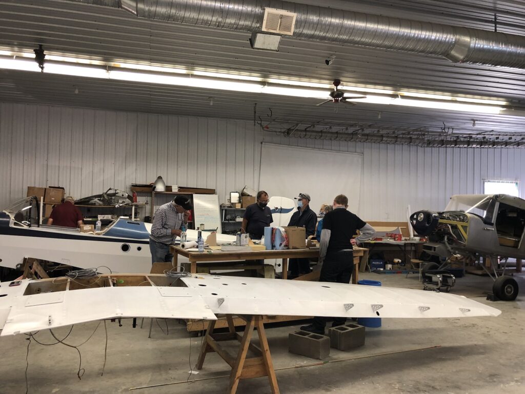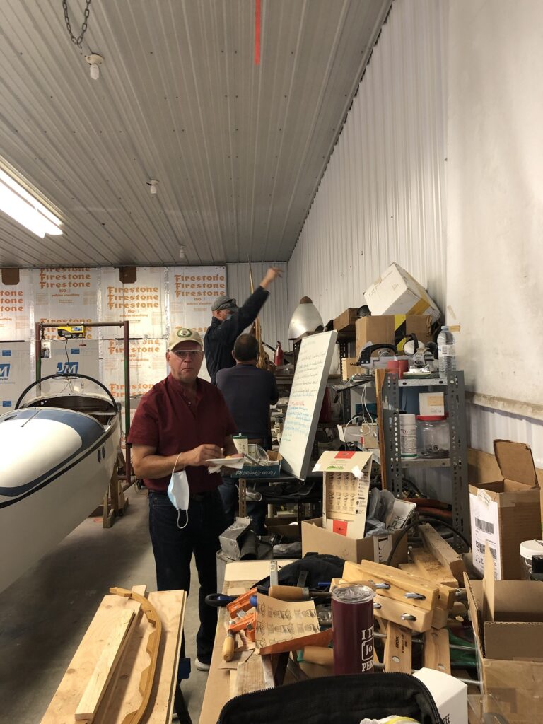 EAA Chapter 63 member Rick Unruh, also the vice president of the British Car Club of Manitoba, thought it fitting to share this on the club’s annual garage tour as the Chapter 63 hangar is the garage he has been spending most of his time in over the past year. Rick has been one of the partners in the Emeraude project since December 2020 and wanted to show off the progress the group is making on the lovely little airplane. The beautiful white and blue Emeraude was star of the show!