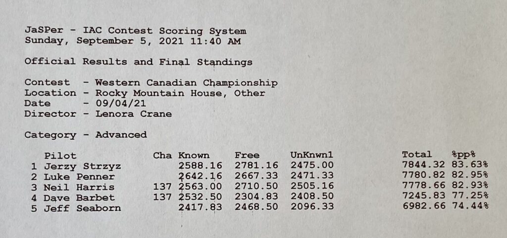 It’s worth noting that there was less than one percent difference among the top three pilots in Advanced category. There’s already a lot of interest amongst the Advanced pilots to be selected for the team to represent Canada in the World Advanced Aerobatic Championship held in October 2023 in the Las Vegas area.