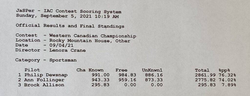 The judges’ scoring was tallied by Pat Spencer and was even completed before the last pilot had landed.