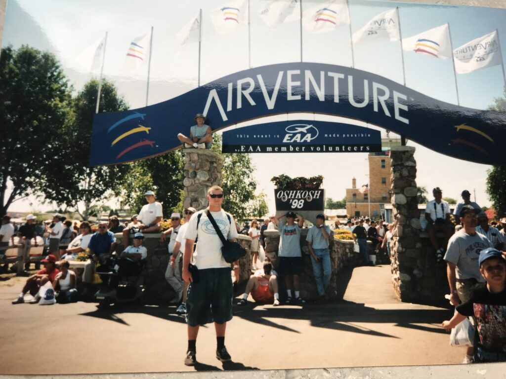 “It was actually on the concrete sidewalk, passing by Boeing Plaza, back then I think it was called AeroShell Plaza, where I actually also decided, at Oshkosh, that before I get home and continue my university to get my aeronautical engineering degree, why don’t you try to apply to become a pilot? This was actually what Oshkosh did to me in 1998,” Peter explained. “[It] helped me to make the decision to become a professional pilot and got me into contact with the homebuilt aviation. Back then in 1998, I also said ‘One day in my life, I’m going to fly an aircraft which I built myself.’ And then I went home and I applied for everything, the airlines and the military, and I actually got accepted into the military.”