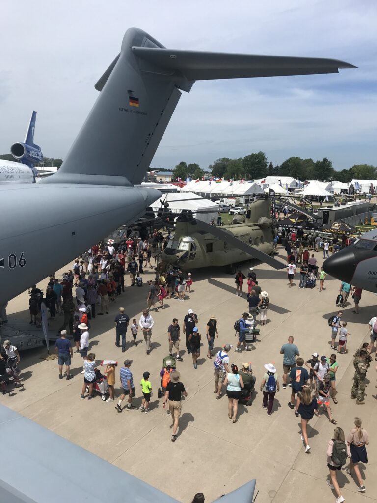 Fast-forward to this past summer at AirVenture 2021. Remember that German Luftwaffe A400M that was the buzz of Boeing Plaza for much of the week? Any guesses as to who the pilot was? You guessed it — Peter Lukasczyk, returning for the first time to the event that altered the course of his life. Now an Oberstleutnant in the Luftwaffe, Peter commanded the A400M crew that stayed the majority of the week at Oshkosh.