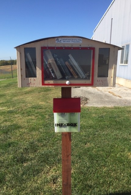 EAA Chapter 91 elected to fabricate its Little Free Library to emulate an airplane hangar. Little Free Libraries® are literally tiny libraries often the size of a breadbox mounted on a post. The public is welcome to remove a book and replenish the library by offering free books to the library. Little Free Libraries® are located around the world and are registered at www.littlefreelibrary.org. Each library is labeled with a charter number issued by the organization. EAA Chapter 91 created a hangar-style Little Free Library® to provide a place for pilots and the public to borrow books at the Lee’s Summit Municipal Airport (KLXT).