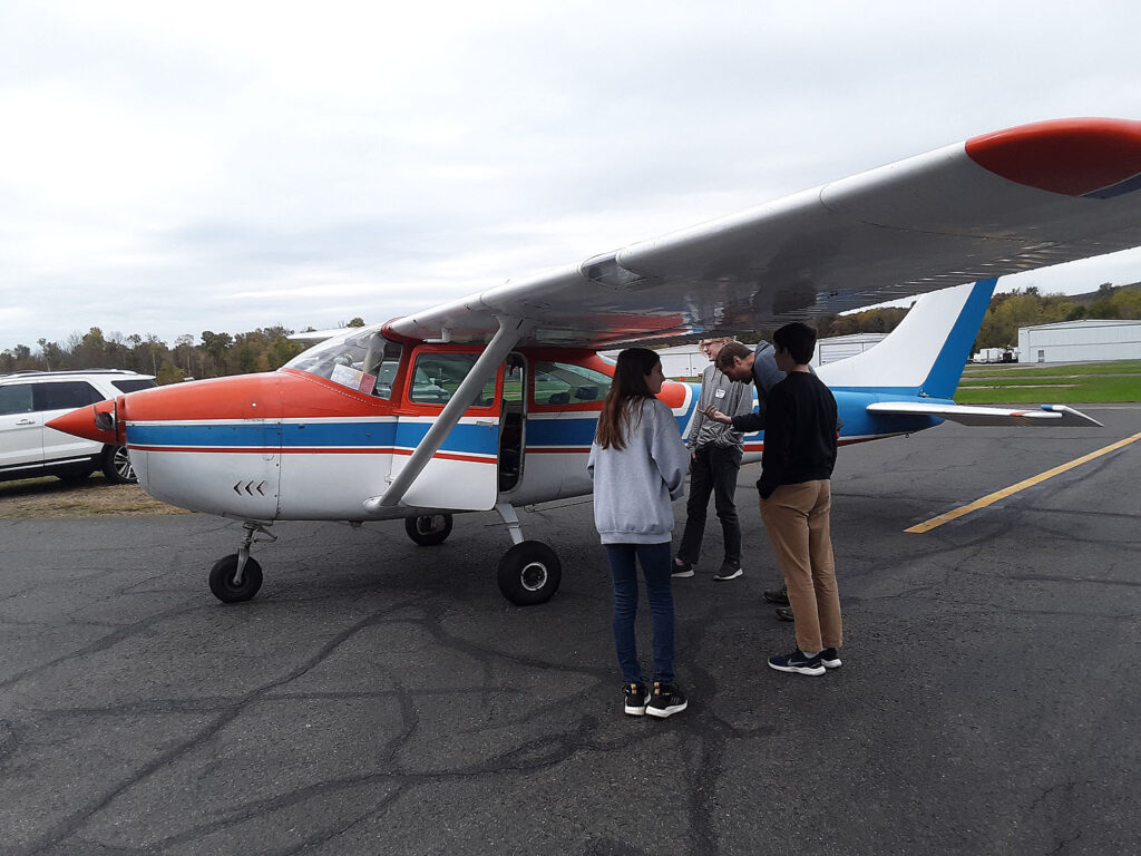 During the break between presentations, Matt Lamm, EAA 1229418, gave a personal tour of his Cessna 182, flown in from Morristown Airport (MMU) earlier in the morning. The Young Eagles were impressed with the roominess of the aircraft and with the addition of the new Garmin equipment, and quickly appreciated how the technology updates can really assist pilots in the operation of their aircraft as well as stay current with the times. Beck and Josh readily identified the similarities in design and layout, as compared to their training aircraft, Cessna 172s.