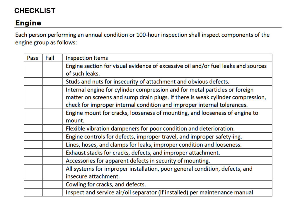 What’s great about your first condition inspection is that you’ll assemble all of the missing checklist items and improve your awareness. You’ll gain confidence and expertise. You’ll improve your preflights and post-flight checks. Give yourself a pat on the back.