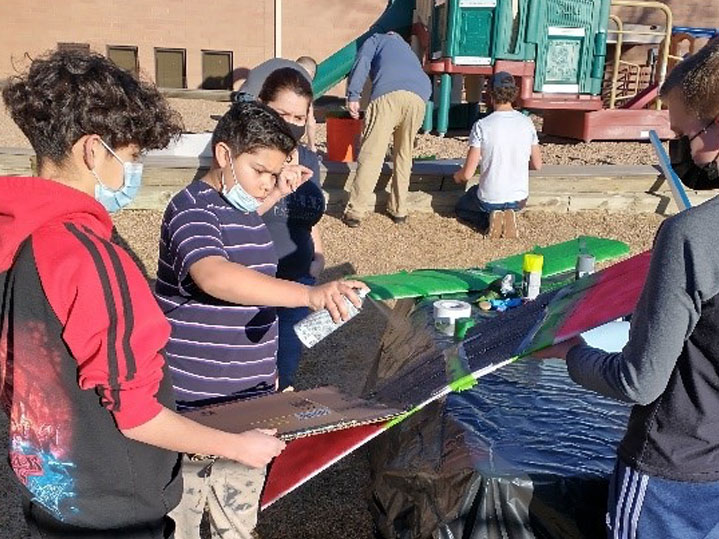 Our first meeting of 2022 was January 15. It was a wild meeting with the goal of getting five airplanes built and ready for avionics and motors. Tasks were split up between building the fuselage, wings, or painting completed airplane parts. You have never seen so much energy moving coherently to get a project off the ground. We meet in the basement of a church and while most of the building happened inside, all the painting had to take place outside.