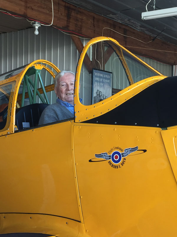 Tim has dedicated the aircraft to Richard Boyd, one of about 400 WWII airmen who received both Royal Air Force and American wings.
