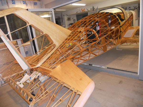 Since I enjoy building, I was willing to sacrifice ease of construction to save weight. Ribs could have been quickly routed from plywood, but a built-up truss rib, each made of 64 pieces, is lighter and stronger. As another example, due to compound curves in addition to a 90-degree twist, the turtledeck stringers were laminated, and thus they are passive in their complex shape, which allows for a lighter supporting structure but, again, more work.