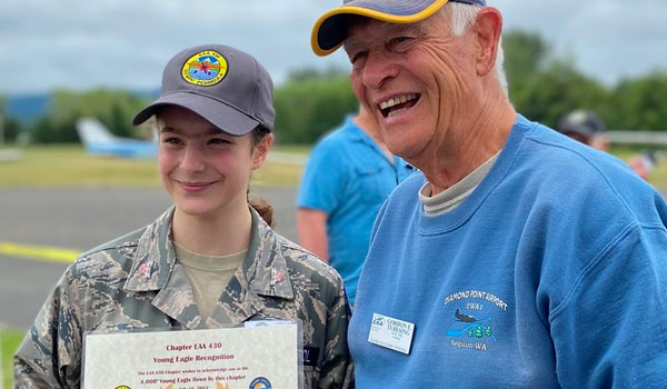 On July 16, EAA Chapter 430 held a Young Eagles rally at Sequim Valley Airport in Sequim, Washington. We would be flying our 4,000th Young Eagle after 20 years of providing free flights to kids ages 8-17. Our special Young Eagle was Paige Biss, a 13-year-old Civil Air Patrol cadet from Port Angeles. Her pilot was Gordon Tubesing, EAA 1050151, who is also a member of UFO (United Flying Octogenarians). According to her mother, April Biss, she has wanted to fly since she was three years old.