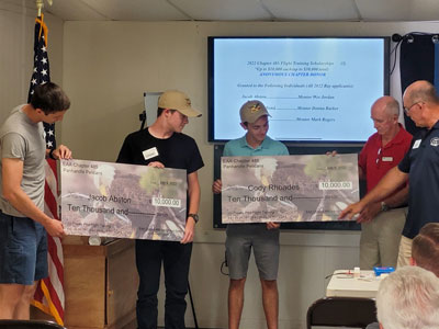 But the big news is that immediately after the June 11 Ray Scholarship award, this level of success convinced a generous chapter member, who chooses to remain anonymous, to fully fund three more $10,000 flight training scholarships! These have been granted to our remaining applicants for the 2022 Ray Scholarship. “We typically interview 4-6 applicants each year for the Ray, and always feel badly for those who don’t get selected,” said Chapter President Ray Moser, EAA Lifetime 702188. “This year we had three other, very well qualified applicants for the Ray. They were all surprised to hear of this opportunity. Two separate award ceremonies were held due to scholar availability. Individual chapter mentors have been assigned to each of these three winners, and they have all started flight training.”