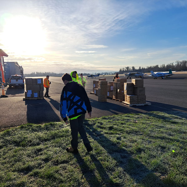 Back in the day, Shaun B. Heaps and Sigmund Bering Sort of BC AERO connected with Sky Terry of Whatcom County DART and because of those meetings, a practice exercise called Thunder Run was held in early July 2022 with BC AERO delivering several thousand pounds of food products to the Bellingham, Washington, airport.