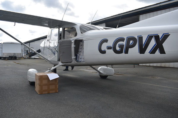 Discussions were subsequently held about the desire of Washington-based pilots to do a similar practise run into Langley to learn the requirements of Nav Canada and the Canada Border Services Agency (CBSA). To provide products to carry, some 240,000 medical masks were obtained and a quick check of the weights determined that a likely load for a General Aviation Aircraft would be 5,000 to 6,000 masks. Weight and balance considerations were not an issue, but space was and so every nook and cranny would be filled. Aircraft would load at the Skajit/Bayview, Washington, airport with some Canadian pilots participating. eAPIS filings and flight plans would be mandatory due to the two border crossings for each trip. Originally there were to be five legs in each round trip. For example: Langley to Bellingham for customs, Bellingham to Bayview for the load, Bayview to Abbotsford for customs, and lastly to Langley to off load. However, U.S. Customs were very cooperative and agreed to place people at Bayview which allowed flights direct from Langley, eliminating one leg completely with significant savings of both time and fuel.