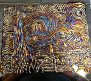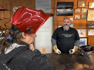 Our class was taught by self-described welding nerd Shaun Walker. He estimates that he has at least 10,000 hours over more than a quarter century spent behind the visor of a welding helmet, he teaches welding professionally at Wisconsin’s Madison Area Technical College, and guess what he does for fun? He welds at home as a hobby, fixing whatever might sort of possibly need fixing, and, as a side gig, produces some absolutely remarkable artwork, including a stunning take on Van Gogh’s Starry Night that substitutes the post-impressionist’s canvas and brushes for stainless steel and a high-voltage torch.