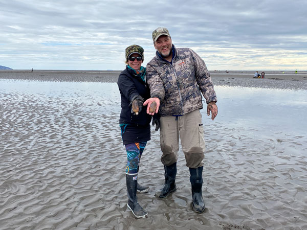 We really wanted to keep at it, and had almost filled our buckets, but it was already time to head out. We had only been there for two-and-a-half hours, but the tide was turning in on us and the sky was quickly filling with traffic trying to beat the rapidly approaching waters. Andy managed to take a count of the airplanes we could see on the flats and there were roughly 70 out there at the same time. It almost felt like a fly-in event, but it was just a bunch of Alaskans doing what Alaskans do when the tides are super-low, and the weather allows. We had a fantastic day with our aviation family, and we will be out there again when everything aligns just right for the next good Clam Jam!