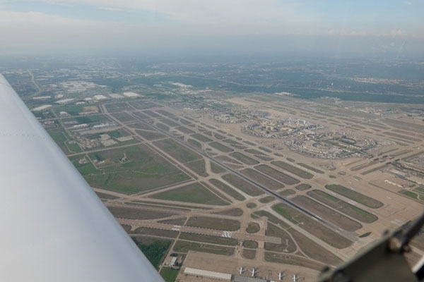 All this went as planned, we have been on this route many times before. We could see multiple streams of airliners flying into DFW Airport and Dallas Love Field on ADS-B and out the window. Regional Approach (DFW TRACON) NE sector can be very busy. As we pass over DFW airport at 4,000 we were told to contact Regional Approach (DFW TRACON) NW sector.